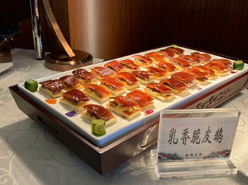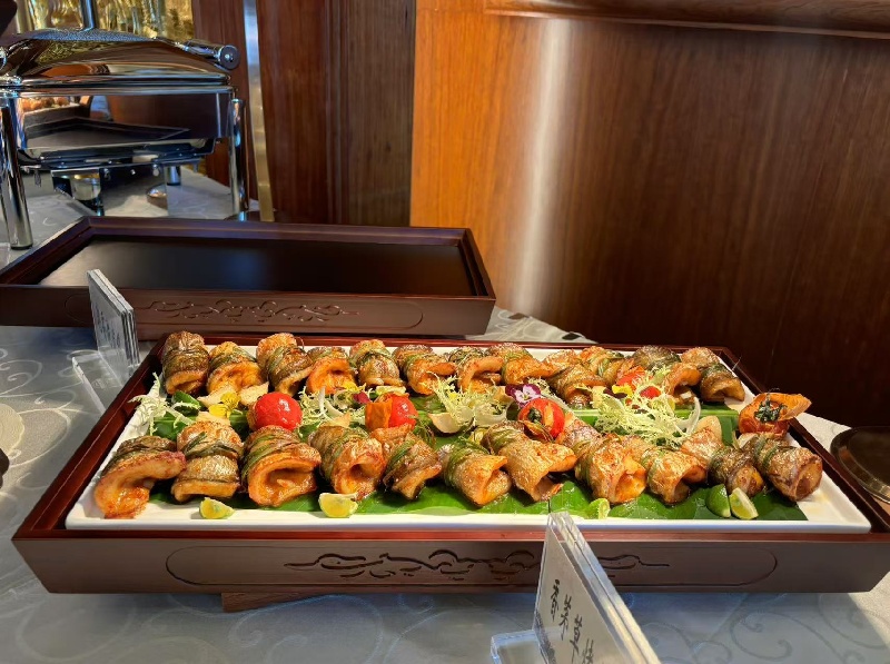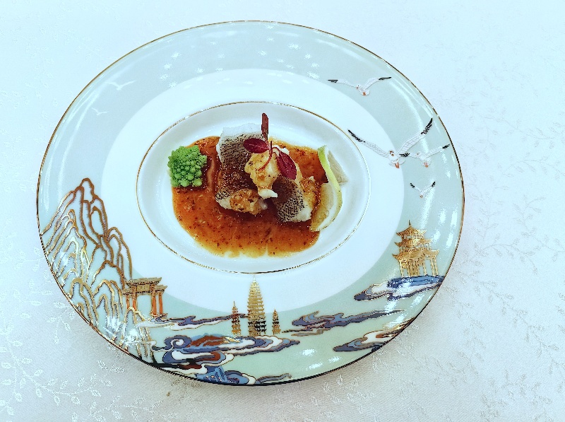 在菜品研发清单上,一道道精致菜品彰显着震庄迎宾馆的匠心。傣式柠檬石斑鱼,鲜活的石斑鱼,经傣家独特手法烹制,再浇淋上满含清新果香的柠檬酱汁,入口时,鲜嫩的鱼肉裹挟着浓郁的柠檬酸香,酸辣交织,口感鲜美可口,制作工艺精湛;意式黑醋小牛肉,鲜嫩多汁的小牛肉,经精心烹制后,恰到好处地融入醇厚酸甜的意式黑醋,丰富而独特的口感,在味蕾上演绎一场别具风情的意式美味之旅;还有山药板栗桂花羹、时令果拼配苹果慕斯等菜品,从食材搭配到烹饪工艺,都经过了精心考量,充分体现了现代饮食绿色生态、营养健康的要求。