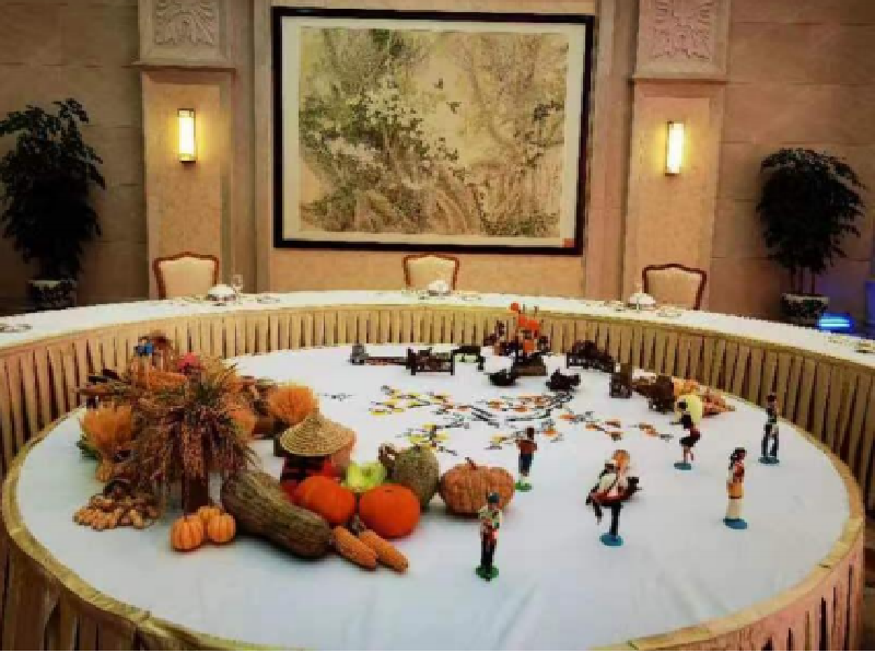 震庄迎宾馆在台型设计方面也独具匠心。中秋主题的台型,运用面塑摆件、植物、灯笼等元素,营造出团圆、赏月的节日氛围;秋收主题的台型,则利用瓜、果、蔬菜等天然元素,展现丰收的喜悦。这些台型设计与菜品相得益彰,为宾客带来了全方位的用餐体验。